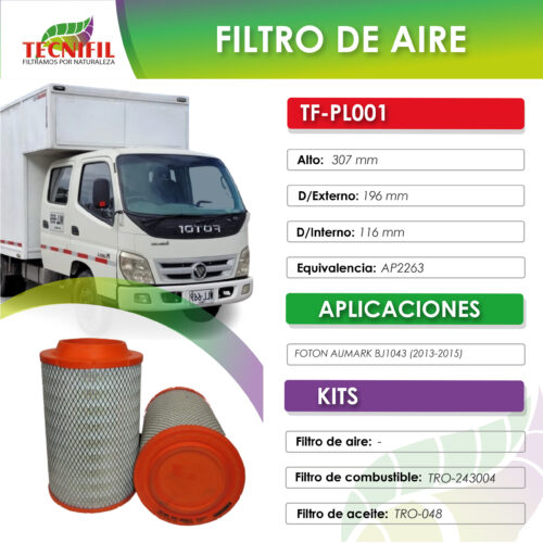 • TF PL20500 2 FILTRO DE AIRE PARA FOTÓN OLIN 3.5 TONELADAS CABINA SENCILLA Tecnifil Colombia