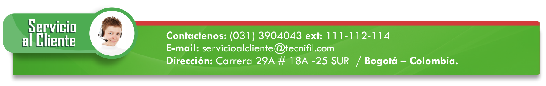 Pensando en nuestros clientes ponemos a disposición nuestros canales de atención. Por favor contáctanos en alguna de nuestras redes, o diligéncia a continuación, el formulario de contacto Tecnifil, y con gusto daremos respuesta a comentarios, inquietudes o solicitudes. Gracias.